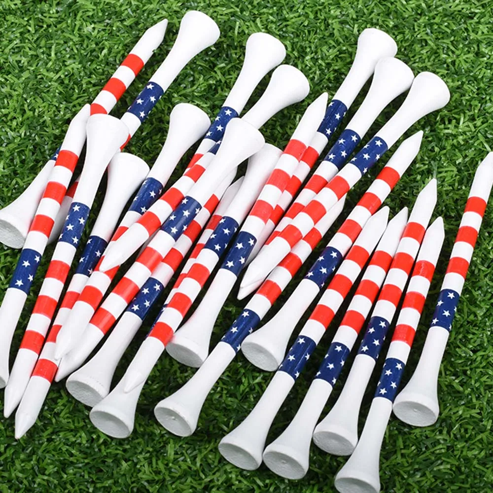 50 Pcs American Flag Style Durable Bamboo Golf Tees, High-Quality Golf Long-Distance Hitting Professional Friction Reducing Tee
